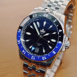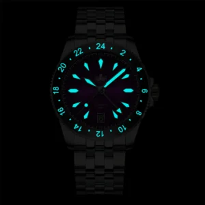 Con una resistenza all’acqua di 100 m (330 piedi), il Voyager GMT (REF. PY058) è costruito per resistere a vari agenti atmosferici, rendendolo adatto al nuoto e all’uso quotidiano in ambienti umidi. Ogni dettaglio è progettato con cura per garantire la durata, dal fondello avvitato sicuro alla funzione GMT di precisione, che ti mantiene sincronizzato tra i fusi orari.